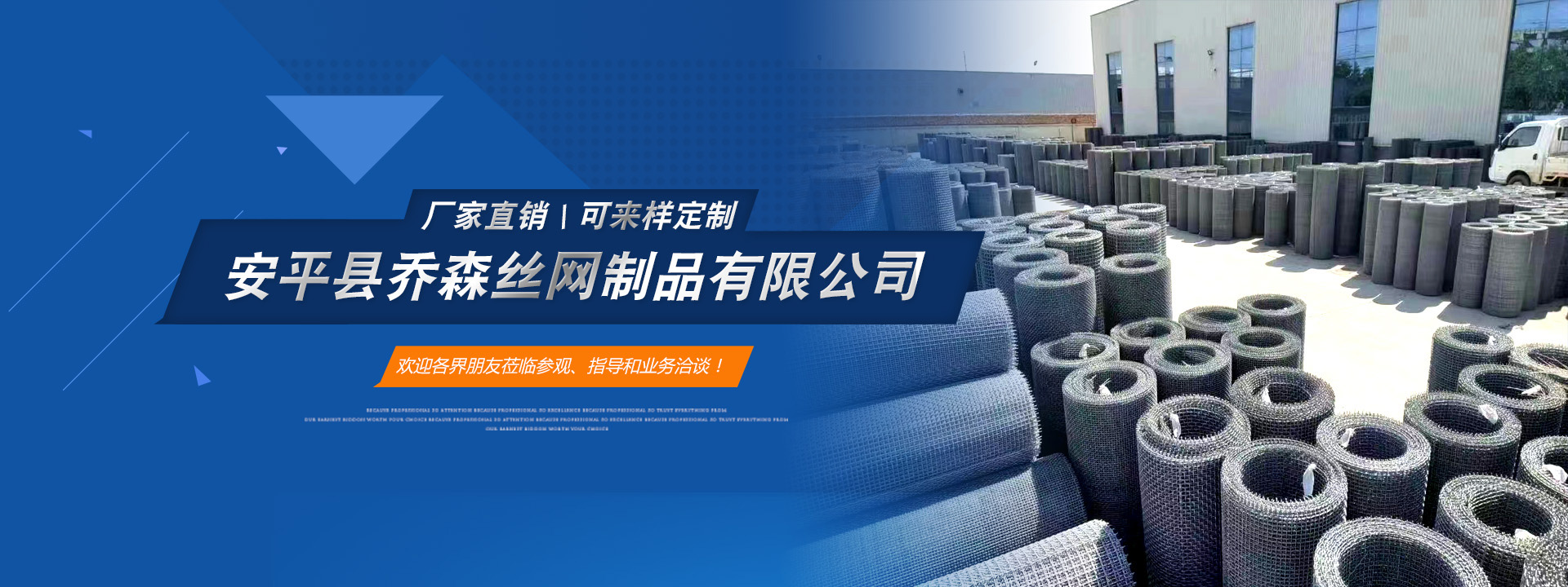 安平縣喬森絲網(wǎng)制品有限公司主營產(chǎn)品:篩網(wǎng)、金屬裝飾網(wǎng)、沖孔網(wǎng)板、防滑板和軋花網(wǎng)。常年現(xiàn)貨供應(yīng)45號(hào)黑鋼絲編織篩網(wǎng)、熱鍍鋅鋼絲篩網(wǎng)、304不銹鋼篩網(wǎng)和冷鍍鋅鐵絲網(wǎng),加工定做耐磨65號(hào)錳鋼絲篩網(wǎng)、菱形孔防堵篩網(wǎng)、養(yǎng)殖用長方孔鐵絲網(wǎng)、金屬裝飾網(wǎng)、盤條 礦篩網(wǎng)等各種鋼絲篩網(wǎng)和建筑用鐵絲網(wǎng)片,歡迎新老客戶前來咨詢洽談合作。
